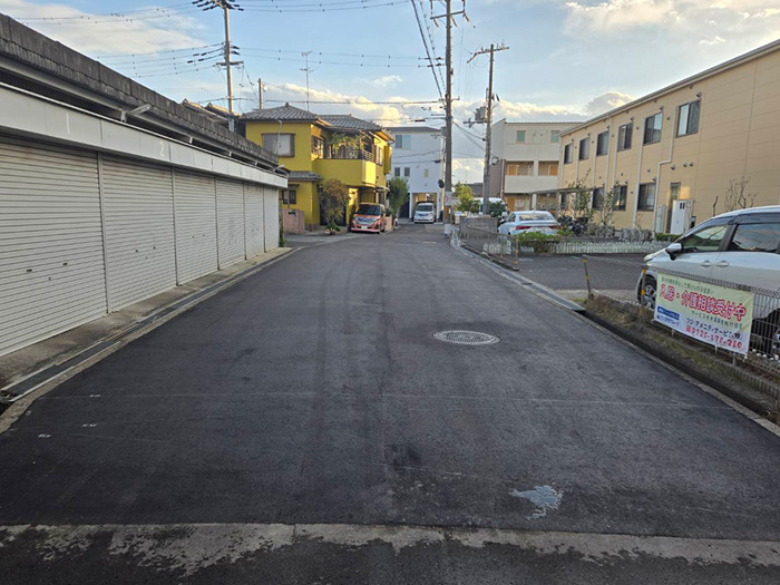天美西3-3-16付近において、地域の皆様より路面にクラック(ひび割れ)が入っているとのご相談を受け、現地確認をおこない舗装の劣化が見られたことから道路の安全確保の観点より舗装整備を実施しました。