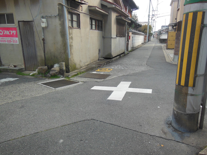 田井城4-7-25付近交差点、安全確保のため交差点マークの復元をさせていただきました。