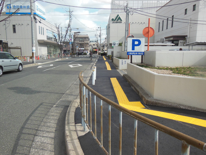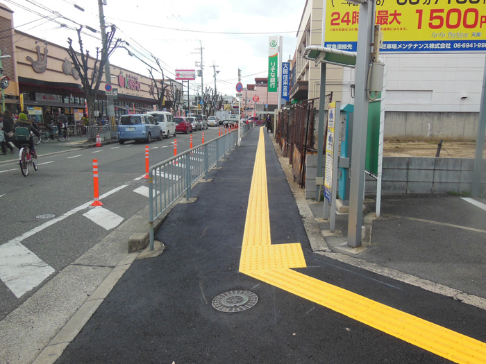 池田泉州銀行から河内天美駅ロータリー付近までの歩道整備をさせていただきました。