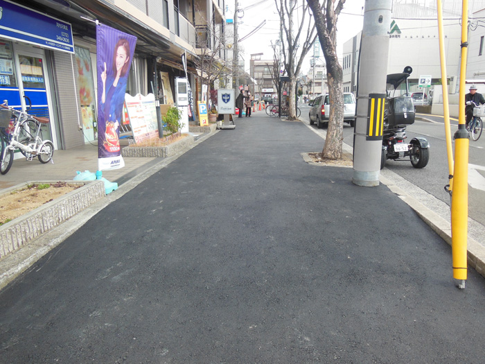 河内天美駅前周辺、JA大阪中河内表側の歩道整備をさせていただきました。