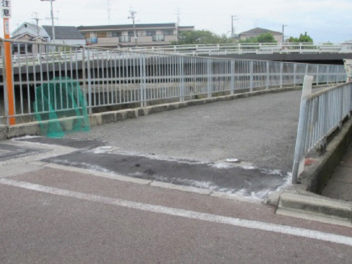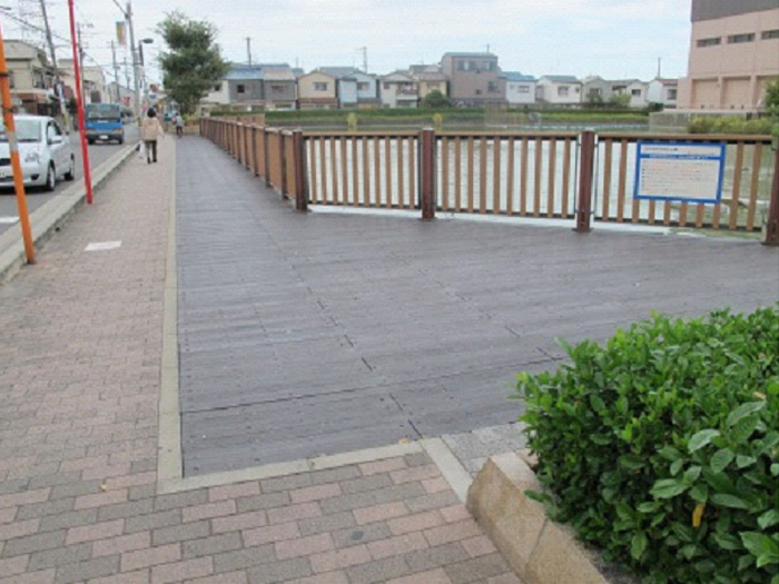 田井城3丁目:市民体育館横、今池上部の板U歩道の老朽化が進み、床板の全面張替補修させて頂きました。