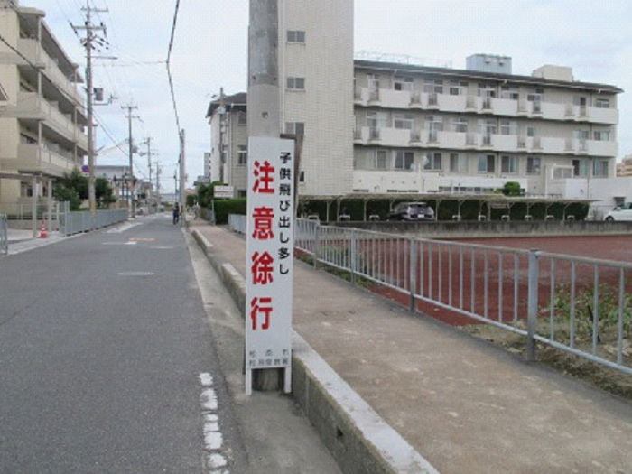 田井城4丁目:子ども飛出し注意の看板を設置させて頂きました。