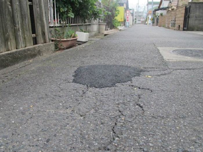 田井城6丁目:路面の陥没をスポット舗装させて頂きました。