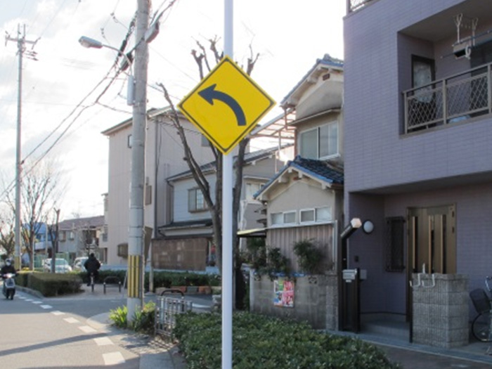 河合1丁目:カーブ表示看板を設置させて頂きました。